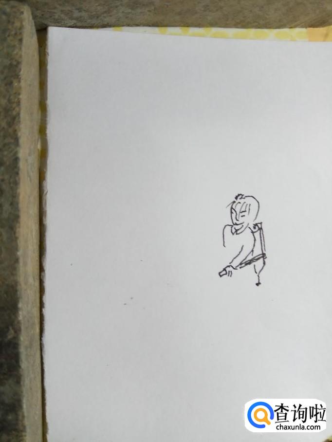 再用曲线画出这个人的上身和背部背着农药桶,有一部分是看不见的,这个人是侧着身子的。