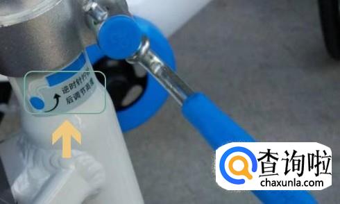 我们先将这个铁杆扳起来,然后顺时针是松开,而逆时针则是拧紧,我们首先当然是松开了,自行车上也会有提示的,如下图;