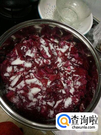 然后就用白砂糖搓洗玫瑰花瓣,然后把搓洗过后的玫瑰花瓣和白砂糖放入玻璃罐里面发酵,过几个月就可以开封了。