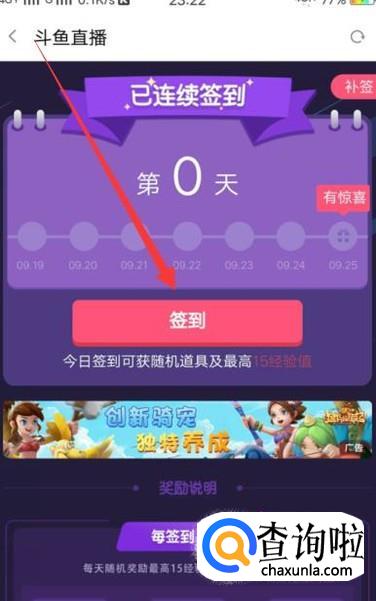 进入之后,点击“签到”即可获得相应的经验值可以升级,如图所示。