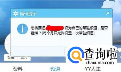 点击设置之后会有下面的小框弹出来,点击确定就好了,每个月只能设置一次常驻频道。