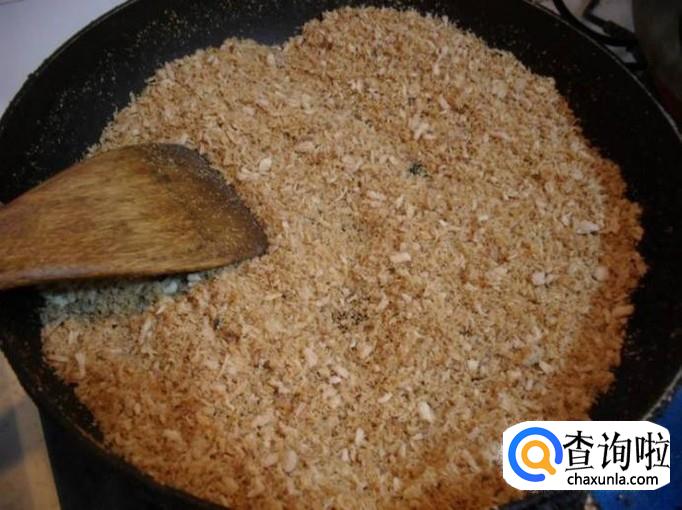 然后取出把肉放入干净的平底锅中,用小火慢慢的进行炒制
