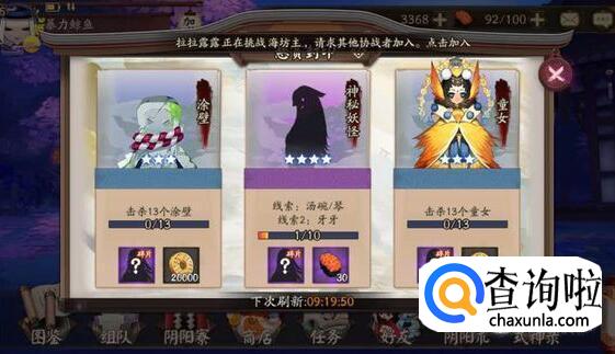 阴阳师悬赏封印任务中,玩家可能会随机刷到神秘妖怪榜单,玩家只能根据系统提供的线索和事件描述来判断要击杀的怪物,而牙牙、汤碗、琴就是孟婆的线索。