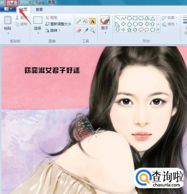 输入文字之后再在菜单那里找到保存选项,点击该选项我们就得到了修改后的图片了,如图所示;