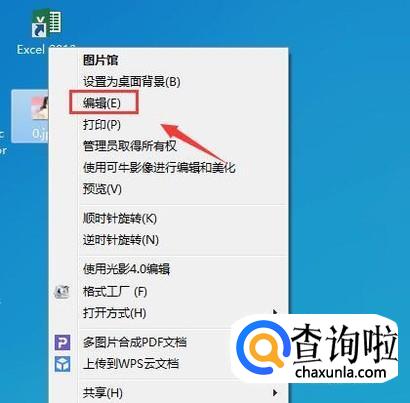首先在桌面上找到我们的图片,并在图片上单击鼠标右键在右键菜单哪里找到编辑选项,如图所示: