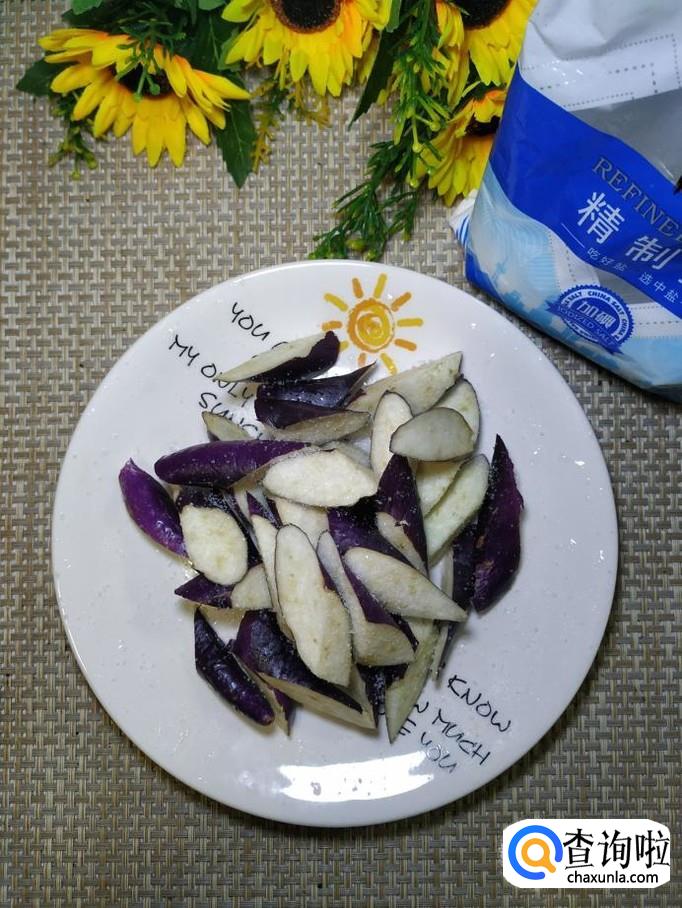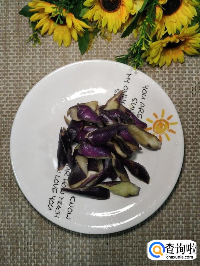 准备适量茄子,洗净后,切成滚刀块,加入适量食盐,腌制十来分钟,用手捏一下,捏去水分,再用清水洗一下备用。