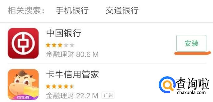 下载中行app,选择安装。