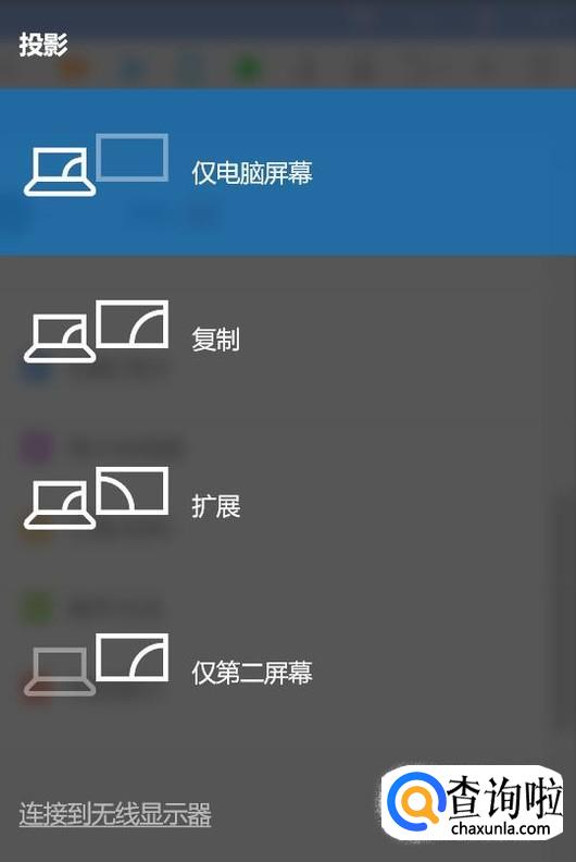这里我们根据情况来选择我们需要哪些屏幕有投射,如果没有数据线的话我们还可以点击连接无线显示器。