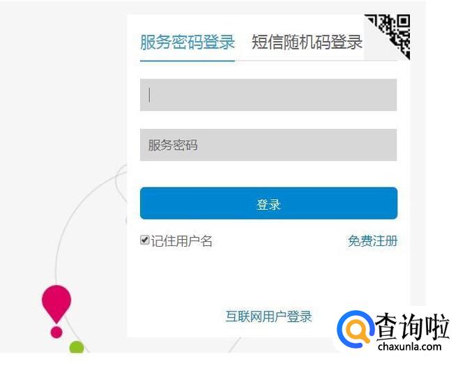 在打开的登录页面中,输入手机号码和服务密码,并点击“登录”按钮,完成手机号码的登录。