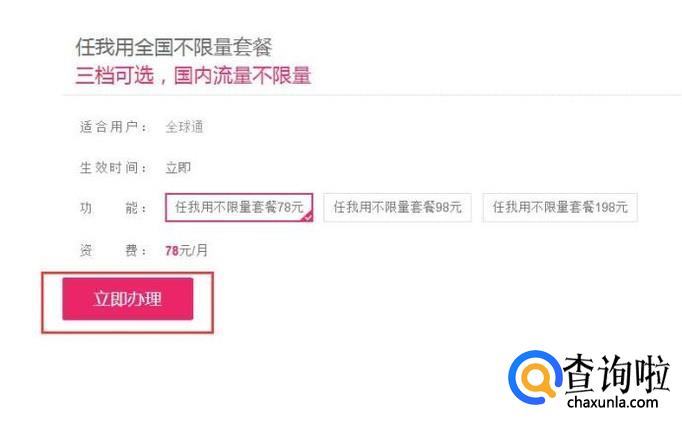 最后,在套餐业务列表中,点击选中该套餐业务之后,点击“立即办理”按钮即可完成套餐业务的变更。
