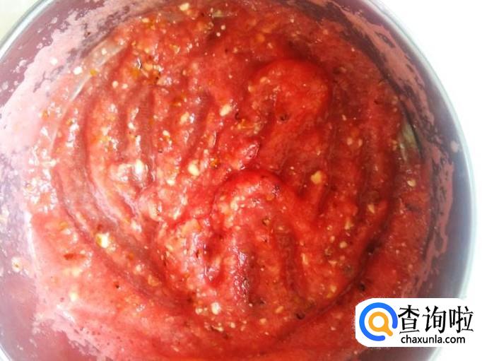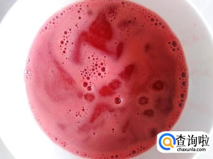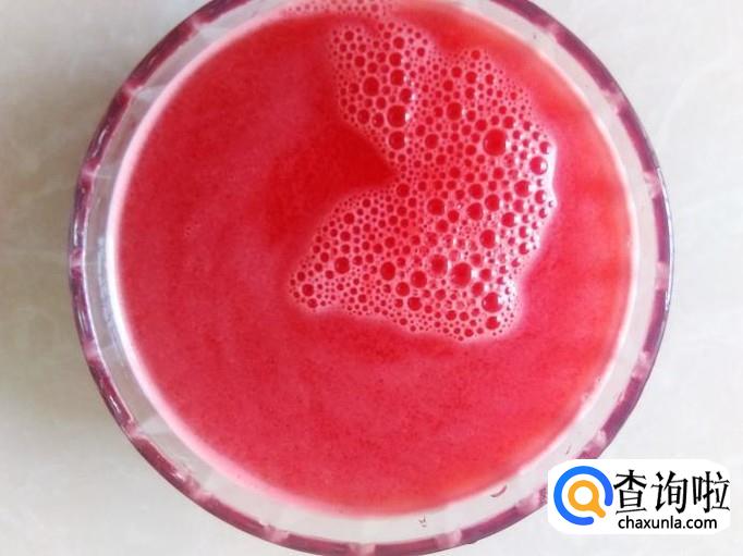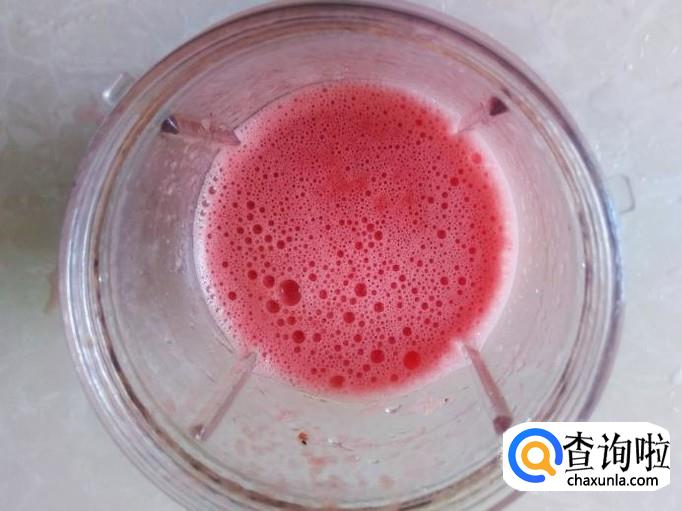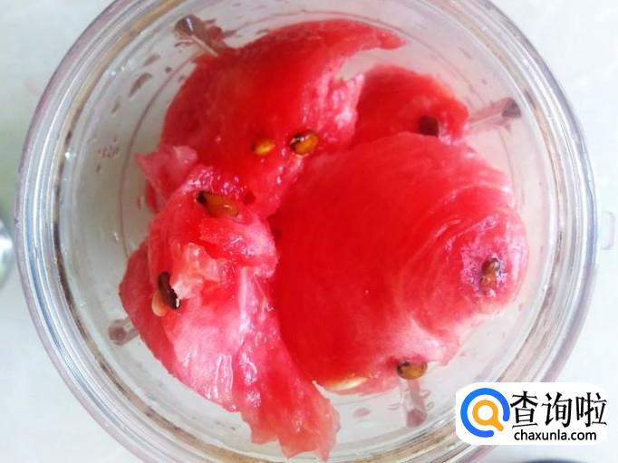 用勺子把西瓜肉挖出来,放到打浆机打成浆。