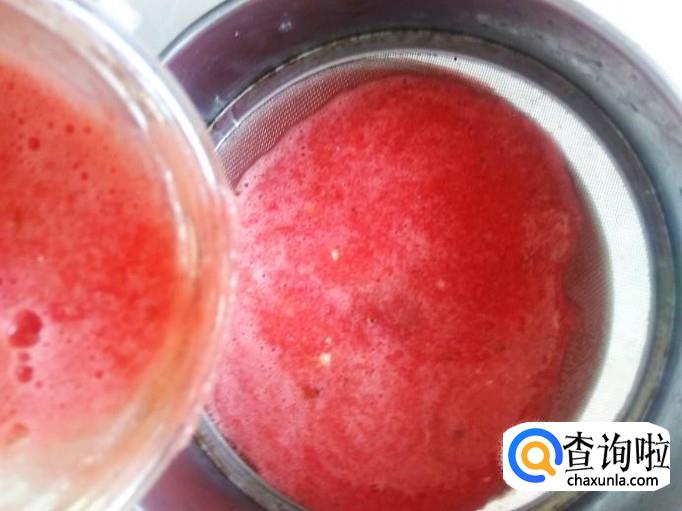 把过滤好的西瓜汁放到碗里放置冰箱冷藏4个小时左右。