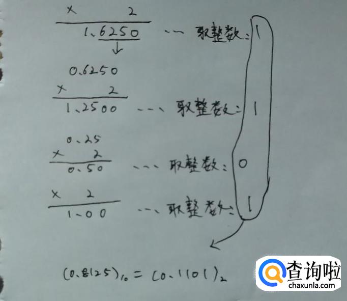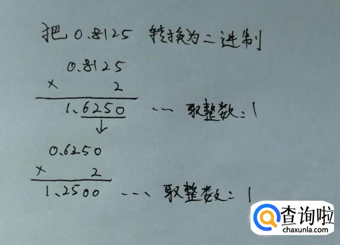 首先把小数部分的0.8125乘于2,得到一个结果1.6250,同时取整数部分,得到数字1