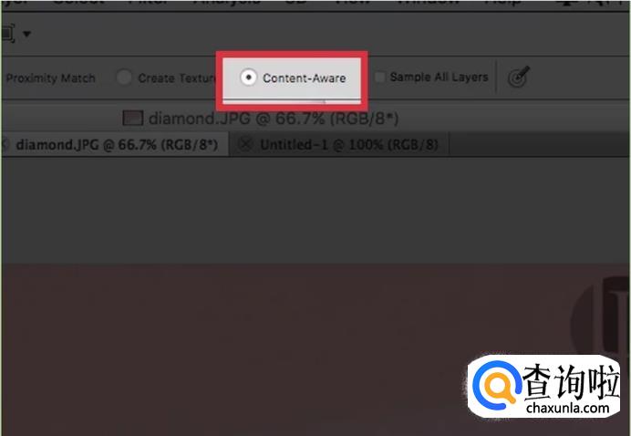点击顶部工具栏中“内容识别”(Content-Aware)旁边的单选按钮。