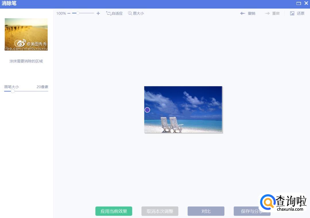 然后点击右方的消除笔,将有水印的地方用消除笔去除就可以啦。