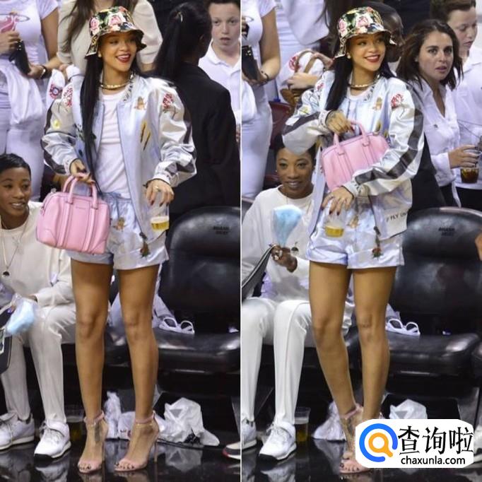 长帽檐渲染渔夫帽,搭配刺绣棒球服,银色热裤。光是刺绣棒球服呵热裤使得整个人未免随意了些。渔夫帽添上了可爱的元素,也看起来更温和。