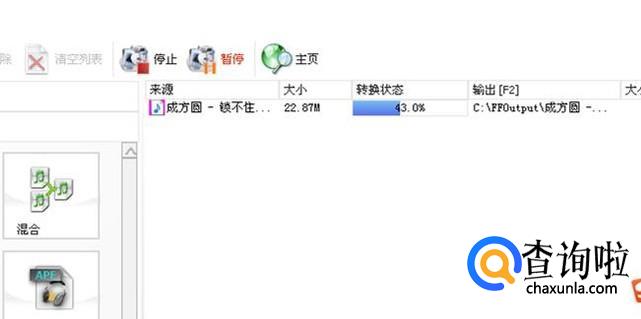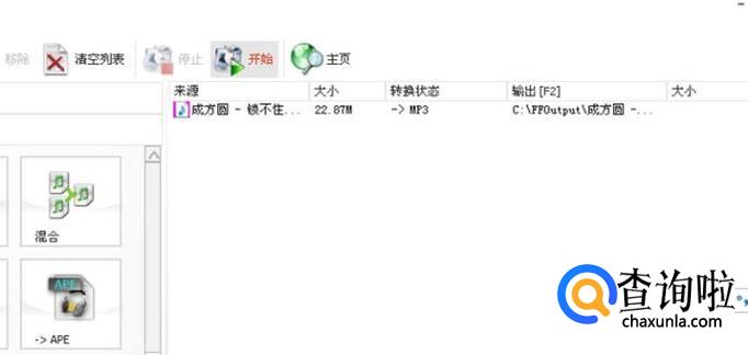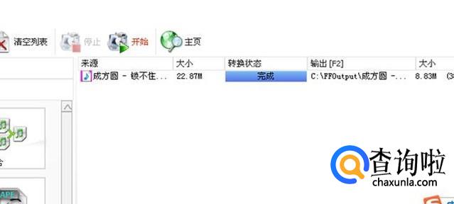 回到主界面,可以看到添加的FLAC音频,点上面的“开始”按钮,开始转换,很快完成。