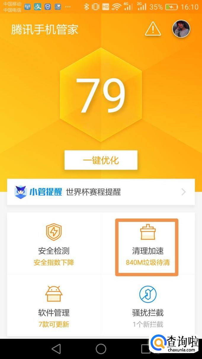 清理内存提高网速,我们首先要在自己的手机里下载一个手机管家APP,打开软件点击首页的“清理加速”来清理内存。
