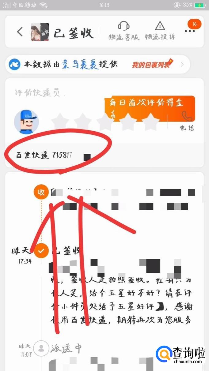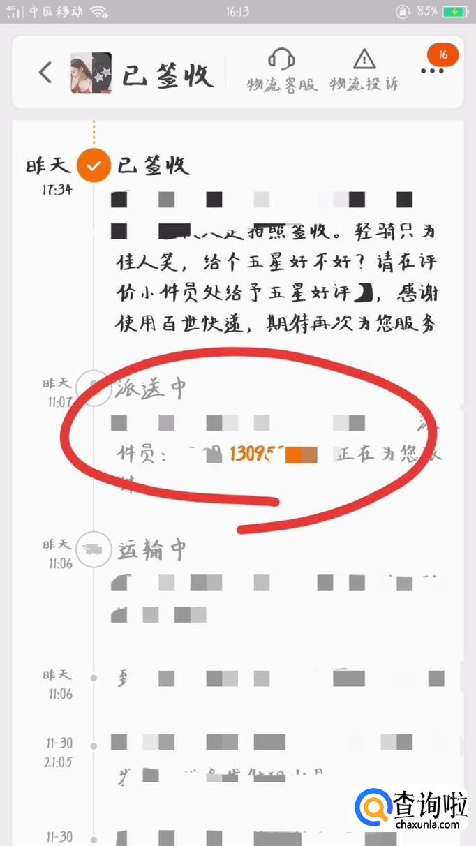 其次可以根据物流上的快递员信息,联系快递员电话询问快递。