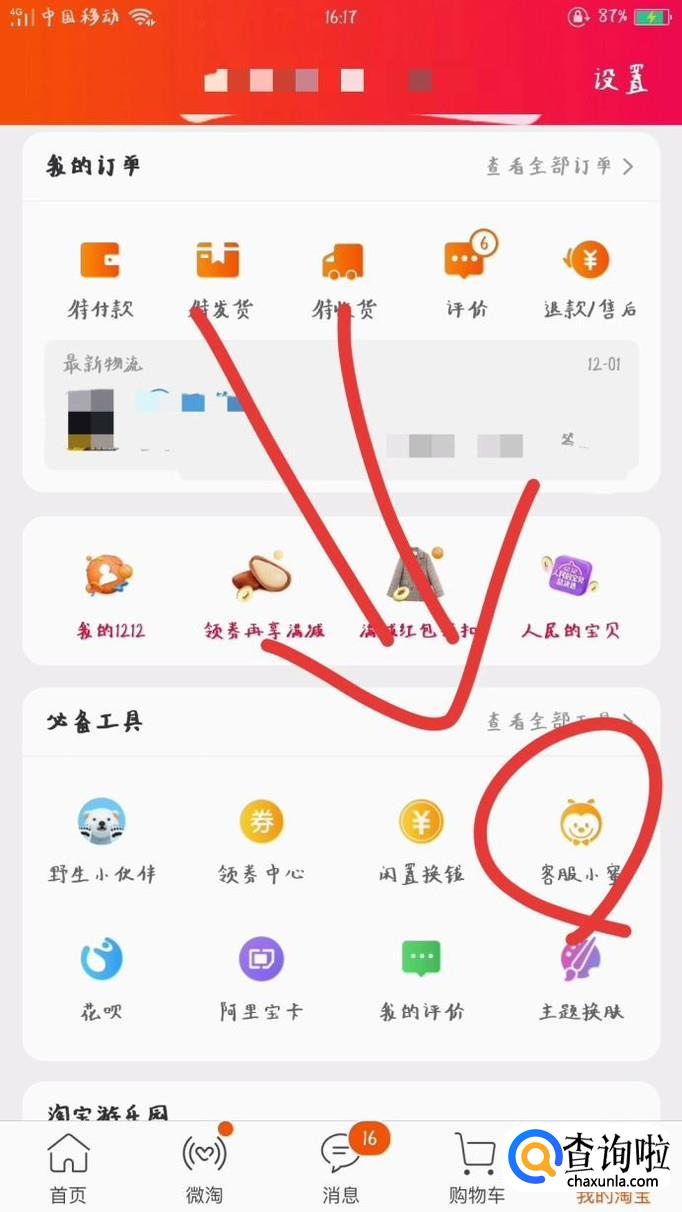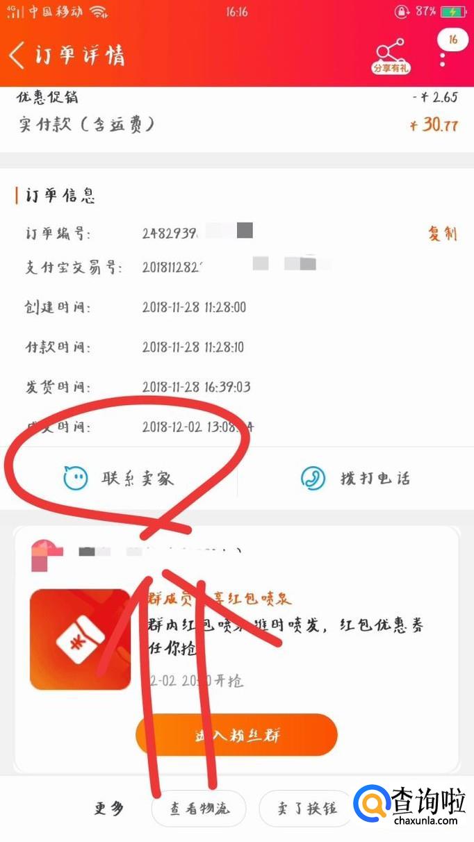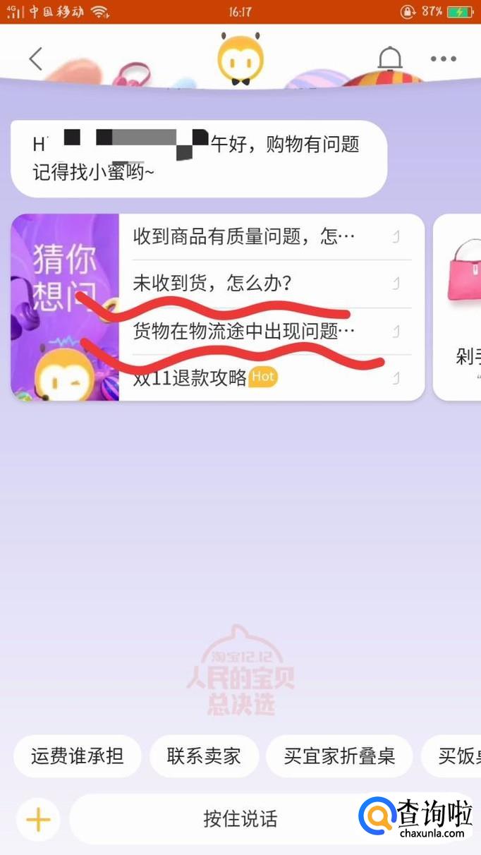 与淘宝官方客服取得联系,询问订单问题得到解决方案。