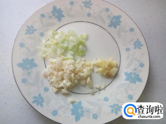 葱,姜,蒜,切成末,准备好红干椒,备用。