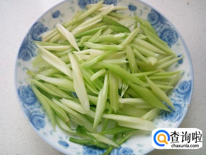 芹菜用水清洗干净,切成寸段。用开水汆一下,再用凉水过凉,沥干水分,备用。