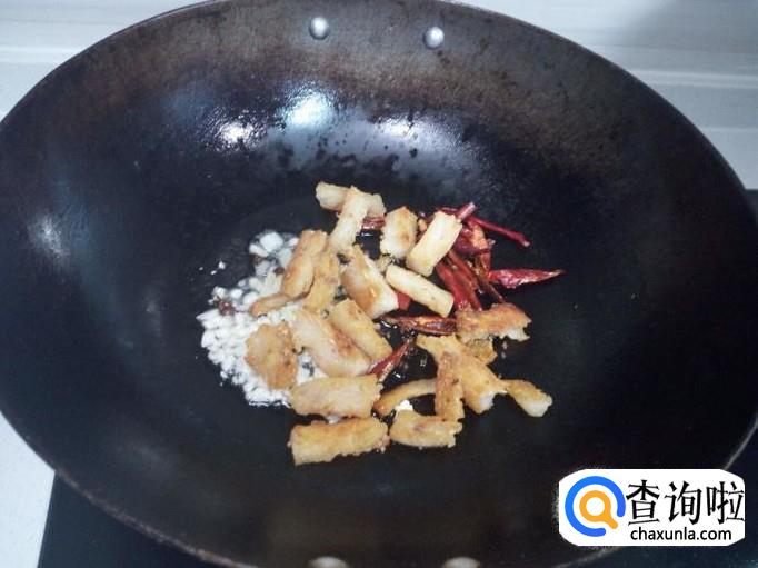 先用锅把鳗鱼干煎一下,煎至外表微黄,盛出备用。