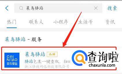 输入【菜鸟驿站】,点击红框中的选项: