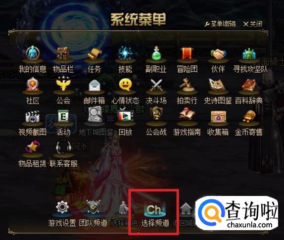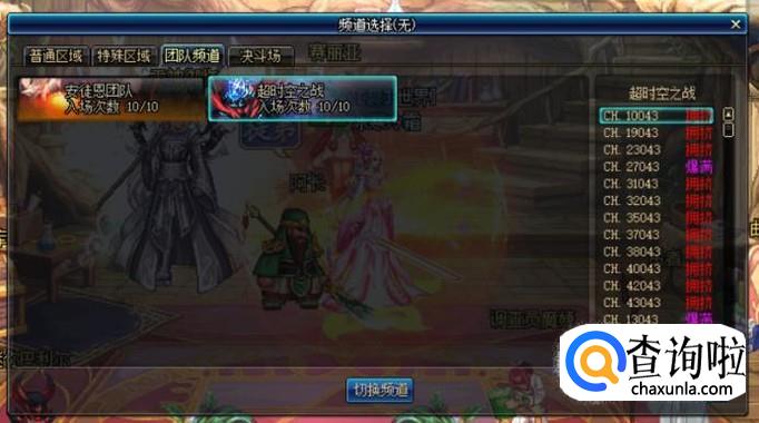 当然,我们也可以打开系统菜单,点击“选择频道”选项,在“团队频道”中选择“超时空之战”的专属频道后点击进入。