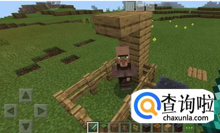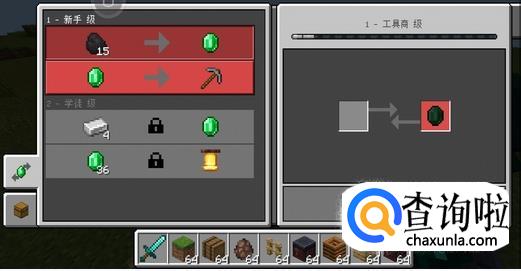 第二个功能,我们可以在无业村民的旁边放置一个锻造台,将无业村民转职成工具匠。工具匠的外观,是穿着带道具袋子的袍子,一副干练的样子。