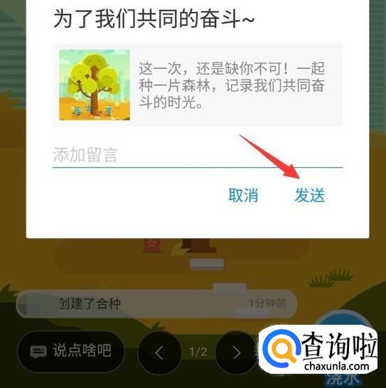 然后会弹出如图所示对话框,此时我们可以输入留言,然后单击”发送“按钮。