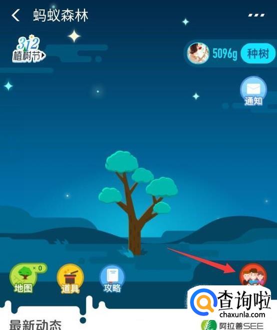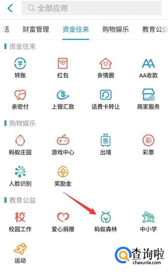 然后将面板往下拉,找到”蚂蚁森林“选项卡。