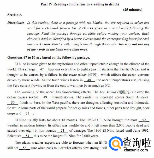 英语选词填空是英语四级占分数比例最低的一部分,但是也要重视,做这个题不用花太多时间。