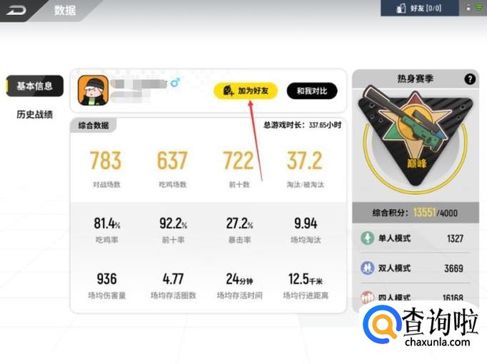 之后会弹出该大神的【基本信息】页面,接着点击页面中的【加为好友】功能,待对方同意后就完成相应的操作了。