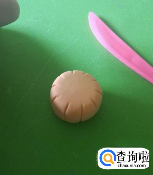 最后再在圆形中间用小刀刻上自己喜欢的图案或者字,一个好看的月饼黏土就完成了。