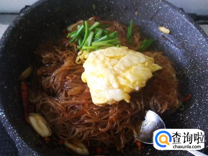 然后鸡蛋、香葱下锅翻炒一下上碟。