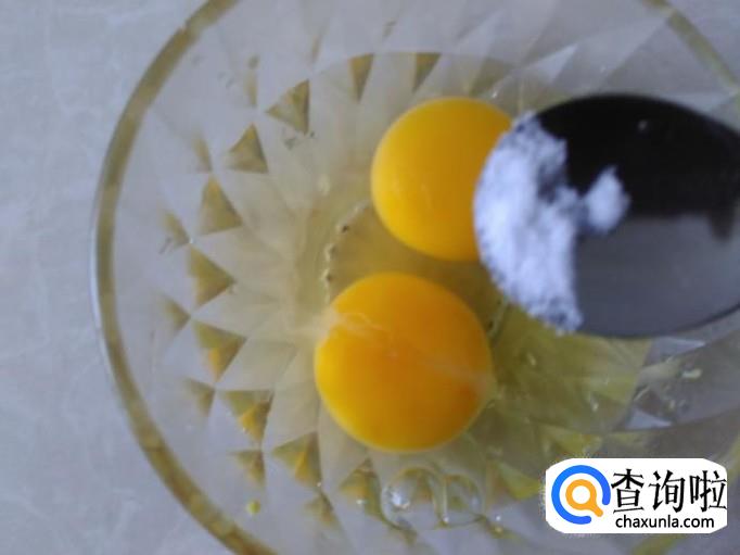 打2个鸡蛋到碗里,加适量的盐搅拌均匀。