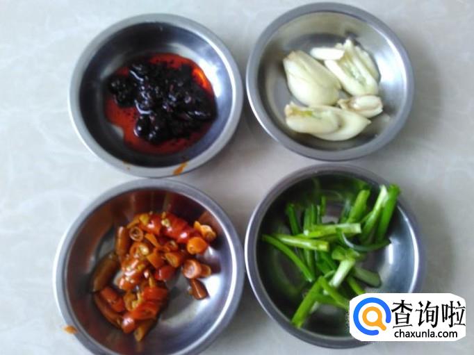 小米辣剁碎,老干妈酱、蒜米、香葱准备好。