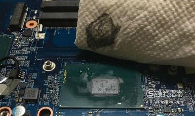 我们先用一张干净的卫生纸把旧硅脂擦拭干净,如果硅脂固化了只需要用手轻轻的扣掉即可。