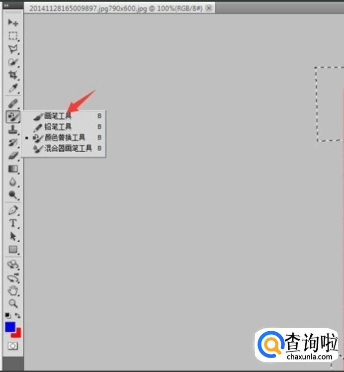 如果边缘还能看出有不同的话,我们可以打开在左侧工具栏,选择【画笔工具】,设置为白色,然后对有差别的部分进行涂抹。