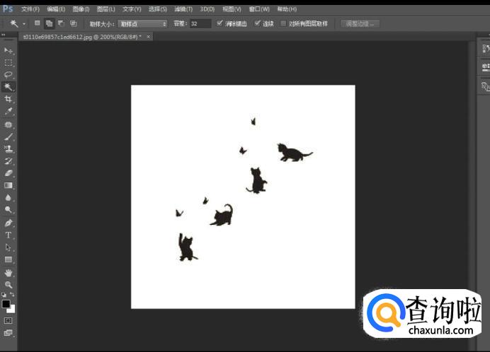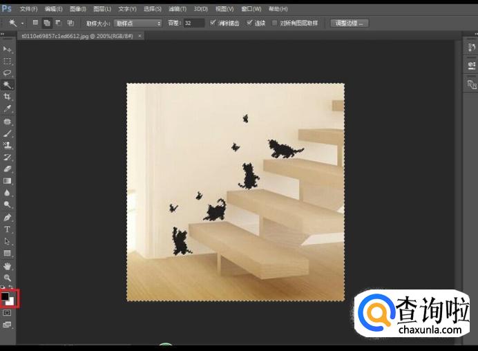 选中完毕后效果如图所示,若图片很复杂,可以按住Ctrl +来放大图片进行处理,然后通过图片中红色标记处我们可以发现当前背景设置为白色,进行下一步操作。