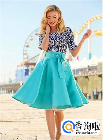 如果你把湖蓝色和单纯的黑色衣服搭配在一起,那是很危险的一件事,一般人穿不出气质且非常的老旧,可如果搭配上黑白纹,或者是黑白波点都是可以的。