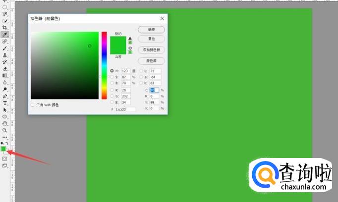 设置背景颜色为绿色,快捷键alt+delete,填充颜色到画布