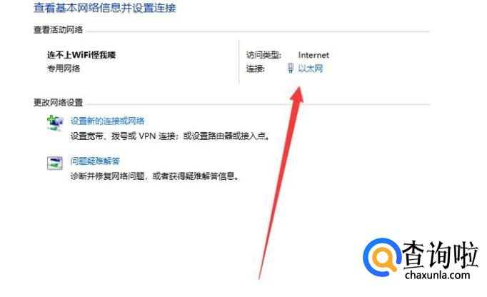 可以打开网络共享中心看一看电脑是否连接网络,如图所示。