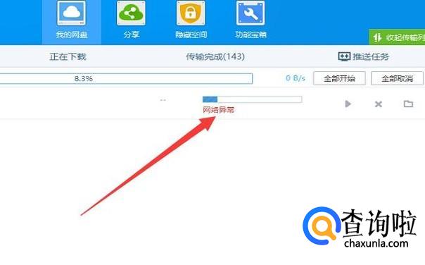 打开百度云网盘客户端,进入之后添加上下载任务,可能出现网络异常的现象,如图所示。