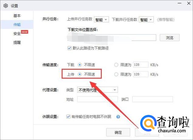 进入之后,可以将传输速度设置为不限速,如图所示。
