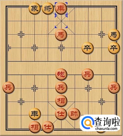 红方车八退一,红方车退回一步,对黑方老将横向将军。如图所示。