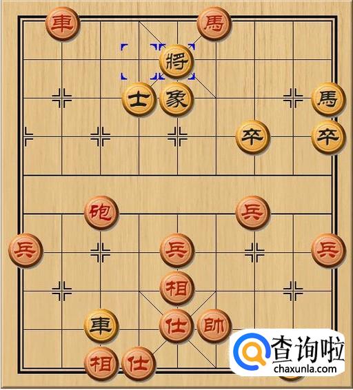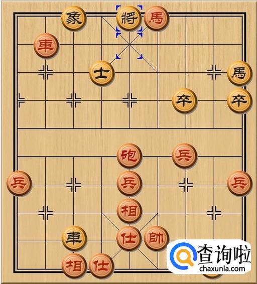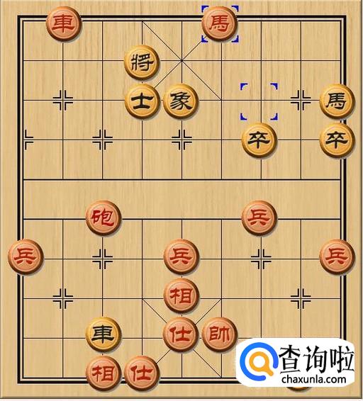 红方先行,红方马三进四,红方马跳到黑方底线,对黑方老将发动攻击,红马将军。如图所示。