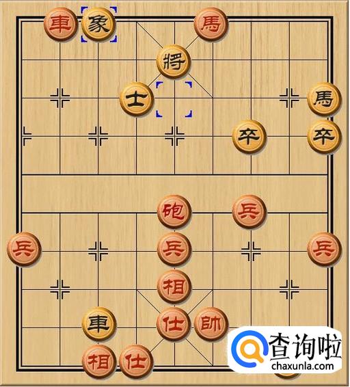 尽管黑方象可以飞到中路杀掉红方马,但是将军的是红方炮,黑方象杀掉了红方马不会起任何作用。因此,黑方士4退5,黑方士退回,抵挡红方的马后炮。如图所示。