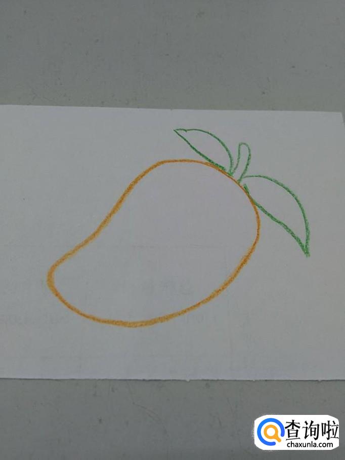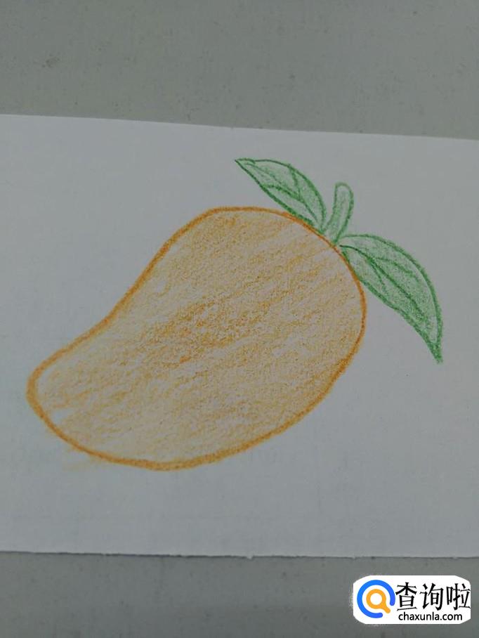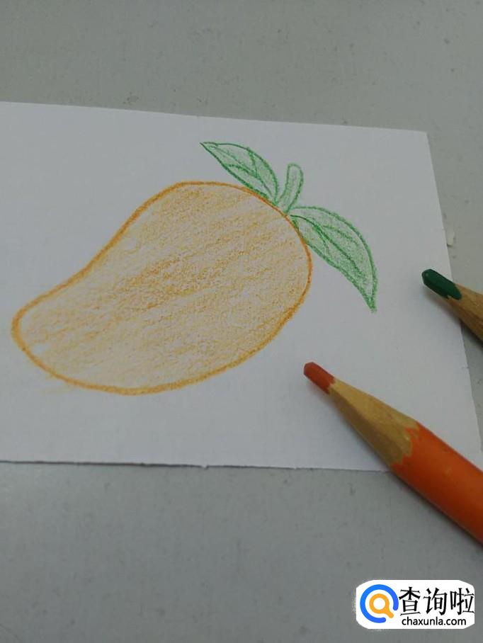 用桔色笔将芒果涂成桔色,芒果就画完了。